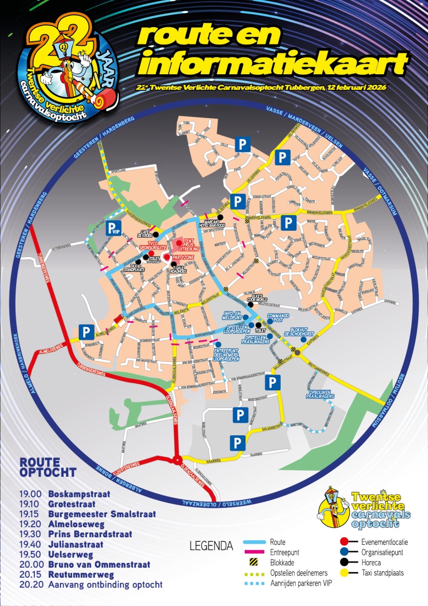 Als je na 17.45 uur met de auto een adres in het evenementengebied wilt bereiken, vragen wij je de auto tijdelijk buiten het evenementengebied te parkeren en de aanwijzingen van de politie en verkeersbegeleiders op te volgen. Direct na afloop van de optocht geven we het gehele evenementengebied weer vrij met uitzondering van het gebied rondom het centrumplein en een gedeelte van de Julianastraat, tussen de Beatrixstraat/Nassaustraat en de Hardenbergerweg/Uelserweg. Dit gedeelte geven we ’s nachts om 02.00 uur weer vrij.